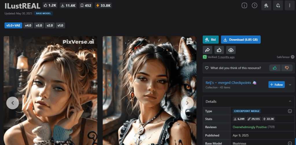 어떤 스타일의 이미지로 실사화 할지는 이미지 생성을 어떤 모델로 하느냐에 따라 그 결과가 많이 달라지겠죠. ILustREAL 모델을 다운로드 받아 사용하도록 하겠습니다. 모델 적용 방법은 [Fooocus 가이드 #4] 포커스 Model, LoRA, Refiner 마스터하기 글을 참고해 주세요.
